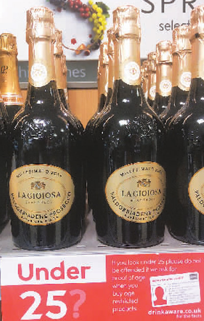 | 這是4月11日在英國巴斯大學(xué)留學(xué)的陳光耀拍攝的照片。英國巴斯某超市酒類貨架上的標(biāo)識“如果您看起來在25歲以下,在您購買此商品時(shí)我們需要查您的身份信息,請不要生氣。” |