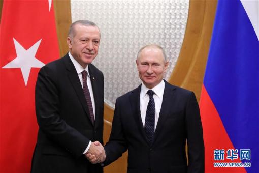 2月14日,在俄羅斯索契,俄羅斯總統(tǒng)普京(右)會(huì)見(jiàn)土耳其總統(tǒng)埃爾多安。 新華社/衛(wèi)星社……