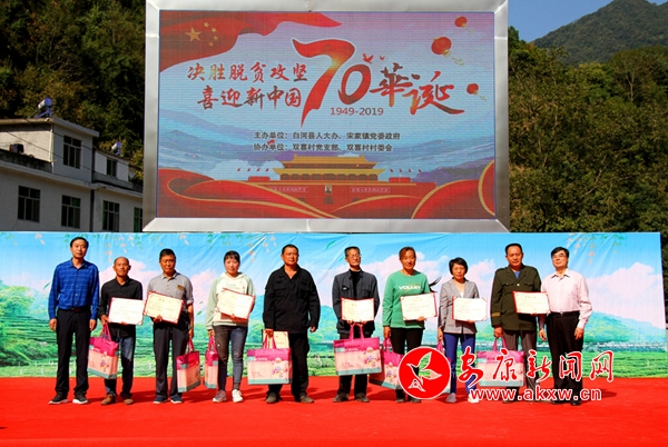 活動(dòng)現(xiàn)場(chǎng),十堰市中醫(yī)醫(yī)院向雙喜村貧困大學(xué)生捐贈(zèng)了助學(xué)金;播放了倉(cāng)上鎮(zhèn)裴家村貧困群眾柯昌全、冷水鎮(zhèn)三院村貧困群眾巴文成的脫貧事跡;表彰了雙喜村愛(ài)崗敬業(yè)、孝老愛(ài)親模范,脫貧致富、產(chǎn)業(yè)發(fā)展、環(huán)境衛(wèi)生標(biāo)兵;圍繞脫貧攻堅(jiān)、掃黑除惡專項(xiàng)斗爭(zhēng),開(kāi)展了有獎(jiǎng)知識(shí)競(jìng)答。