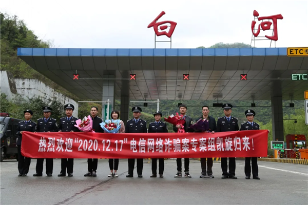 3月31日上午,白河縣公安局在十天高速白河出口舉行儀式,熱烈歡迎“2020.12.17”電信網(wǎng)絡(luò)詐騙案專案組凱旋。公安局局長譚簡出席儀式并講話,相關(guān)警種部門負(fù)責(zé)人及民警代表參加了儀式。