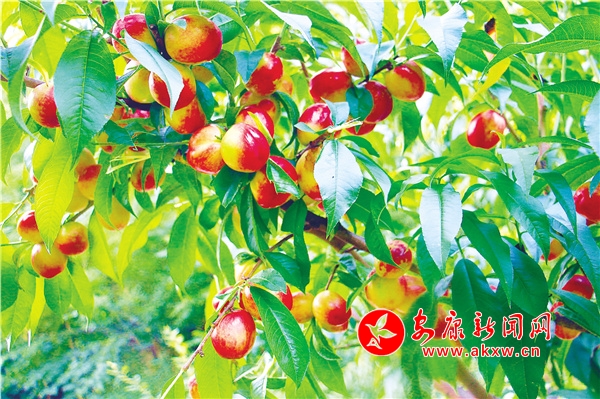 桃園主人向我們介紹,桃園里有十幾個(gè)品種的桃子,從五月下旬開始,一直到八月中秋陸續(xù)成熟。目前,油桃正值采摘期,已采摘5000余公斤,果園里黃桃、水蜜桃也已成熟,預(yù)計(jì)年產(chǎn)量1.5萬公斤左右,這也將帶來一筆不小的收入。