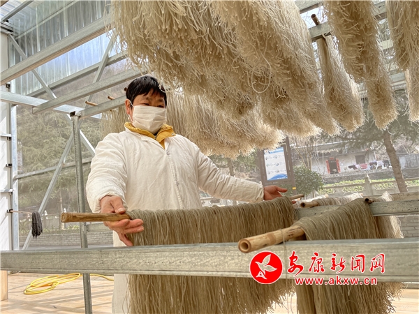 伴著明媚的春光,走進(jìn)焦贊村的招牌企業(yè)--白河縣希望農(nóng)產(chǎn)品加工合作社,一桿桿紅薯粉條正在懸掛、晾曬、消凍。生產(chǎn)車間內(nèi)熱氣騰騰,六七名工人組成一條生產(chǎn)線,經(jīng)過(guò)打芡、撈粉、晾粉等多道工序,金燦燦的紅薯粉條便成型了。憑借著質(zhì)量過(guò)硬、口碑好,合作社生產(chǎn)的紅薯粉條和洋芋粉在市場(chǎng)上很走俏,并與西安電子科技大學(xué)和縣內(nèi)外學(xué)校企業(yè)達(dá)成了長(zhǎng)期供貨協(xié)議。