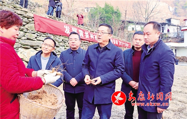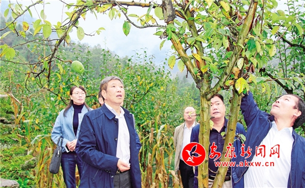縣人大常委會主任何益新(前排左一)調研督辦縣政府及其相關單位辦理《關于推進木瓜產業(yè)持續(xù)發(fā)展的議案》情況