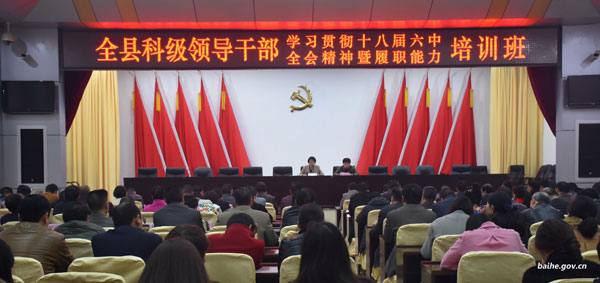 11月16日,白河縣科級(jí)領(lǐng)導(dǎo)干部學(xué)習(xí)貫徹十八屆六中全會(huì)精神暨履職能力專題培訓(xùn)班正式開班?h委常委、組織部長張吉彩出席開班儀式并講話。各鎮(zhèn)科級(jí)領(lǐng)導(dǎo)干部、縣直……