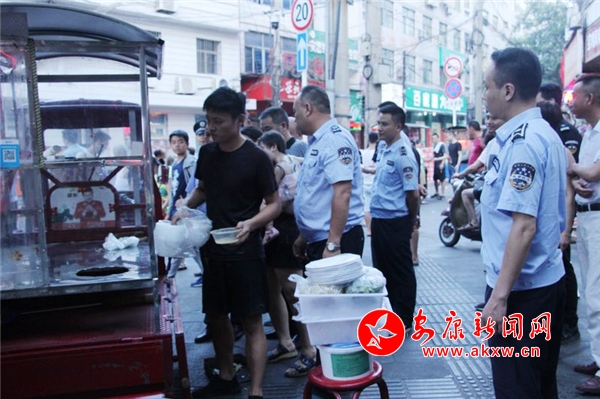 晚上7點,執(zhí)法隊員沿興安東路、靜寧路到金州廣場沿線進行逐一巡查,發(fā)現(xiàn)多輛流動餐車停在街邊叫賣,攤位前有市民購買,有的群眾正在露天用餐。執(zhí)法人員首先叫停了各攤點的售賣行為,并對流動攤販進行宣傳教育,隨后下發(fā)整改通知書,現(xiàn)場共取締流動攤點8個,并按照《陜西省食品小作坊小餐飲及攤販管理條例》第四十五條規(guī)定,對違章占道經(jīng)營的食品商販處以沒收經(jīng)營工具的處罰。h7B安康新聞網(wǎng)