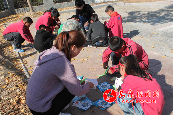 教小學(xué)生們放飛自己作的“小飛機(jī)”