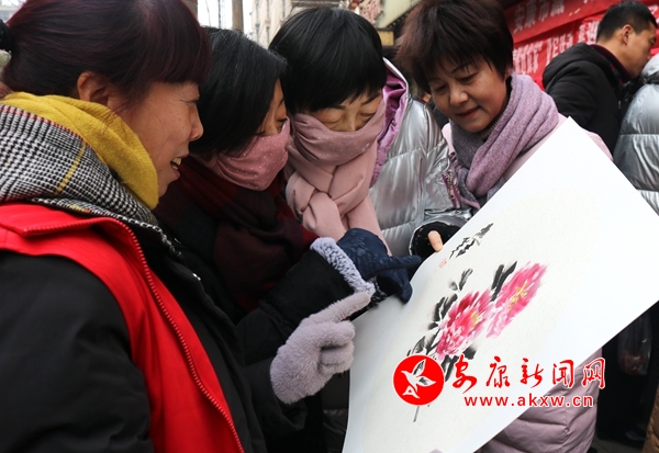 “很高興到鼓樓社區(qū)寫春聯(lián)、送祝福。”張思成點(diǎn)贊鼓樓社區(qū)充滿愛心、重視文化,提供很好的平臺讓書法家和居民一起交流學(xué)習(xí),營造濃濃的春節(jié)民俗氛圍。現(xiàn)場不僅有著名的書法家,著名的畫家也為活動(dòng)增添色彩,“寒香臘梅”圖、“花開富貴”圖、“事事如意”圖、“節(jié)節(jié)高升”圖等顏色艷麗、生動(dòng)活潑,美好的寓意是送給居民最溫暖的祝福。
