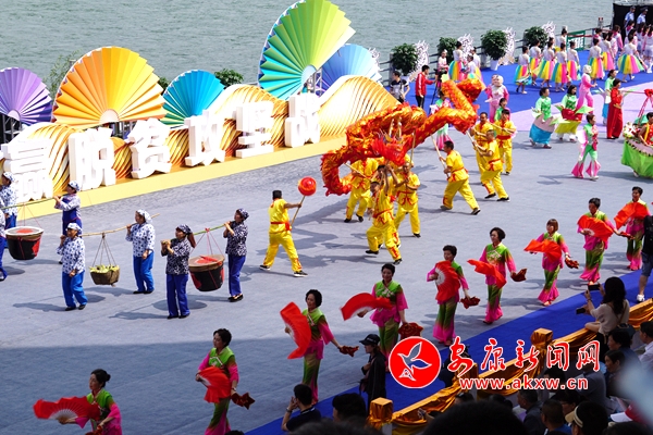 在龍頭祭祀儀式、龍舟競技展示、“非遺”展演及民族歌舞表演等主題活動之后,來自漢濱區(qū)的民間文藝社團驚艷登場,深受大眾喜愛的火龍、舞獅、彩龍等民俗節(jié)目伴隨著隊員們孔武有力的舞動跳躍博得現(xiàn)場陣陣歡呼;喜慶熱烈的采船、花轎表演,俏皮滑稽的大頭娃娃、濟公,栩栩如生的西游記人物展演以及酒缸、花連棍、戲曲人物、民族舞展演等讓現(xiàn)場觀眾目不暇接,文藝隊員們在展演中大放異彩,點燃了現(xiàn)場觀眾的激情。