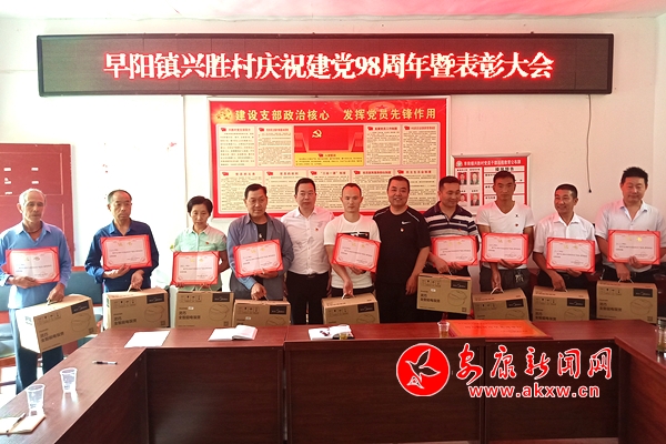 本網(wǎng)訊 (通訊員 汪丁 袁朝寧)為慶祝中國共產(chǎn)黨成立98周年,激勵廣大黨員干部永葆政治本色,凝聚決戰(zhàn)決勝脫貧攻堅的決心和力量,6月18日,漢濱區(qū)早陽鎮(zhèn)興勝村聯(lián)合漢濱區(qū)市場監(jiān)督管理局舉行慶祝建黨98周年暨表彰大會。idb安康新聞網(wǎng)