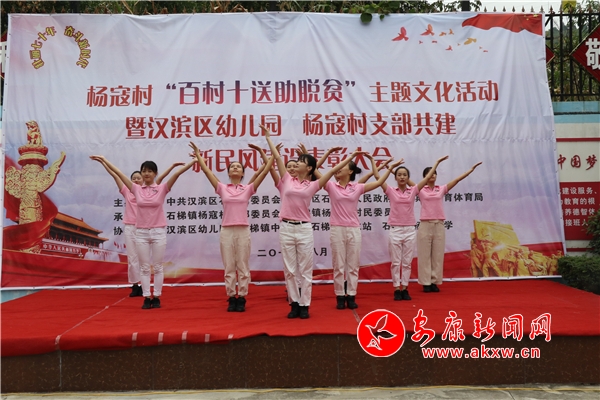 在熱鬧歡快的花鼓聲中,“好鄉(xiāng)賢”楊堯禮帶著孫子登臺,用純樸的方言唱出了《掃黑除惡樹新風(fēng)》,贏得了在場群眾的陣陣掌聲;在村民自編自演的小品《摔碗》中,詼諧的語言和感人的情節(jié),感動得臺下群眾眼泛淚花; 在漢濱區(qū)幼兒園老師們表演舞蹈的《一千零一個愿望》后活動落下帷幕;顒悠陂g,愛心人士胡國財代表陜西省安康市中福工程有限公司為10名準大學(xué)生捐贈了每人2000元現(xiàn)金,漢濱區(qū)幼兒園也送上了特殊的關(guān)愛。