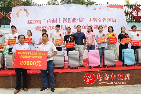 本網(wǎng)訊(實習(xí)記者 唐正飛)8月24日上午,一場別開生面的集體升學(xué)禮在楊寇村舉行,來自漢濱區(qū)教體局、石梯鎮(zhèn)等廣大干部群眾及愛心企業(yè)陜西省安康市中福工程有限公司百余人參加了此次活動,共同見證該村的道德模范表彰。