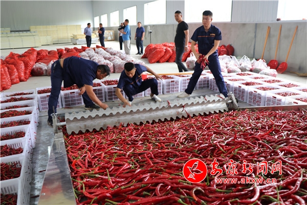 本網(wǎng)訊(通訊員 周濬)9月5日,隨著一筐筐鮮椒被倒在傳送帶上進(jìn)行烘干,位于安康市漢濱區(qū)五里鎮(zhèn)張營(yíng)村的安康益禾辣椒烘干廠試產(chǎn)成功,正式投入運(yùn)營(yíng),這是安康市首家現(xiàn)代化的辣椒烘干廠。