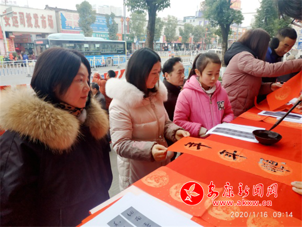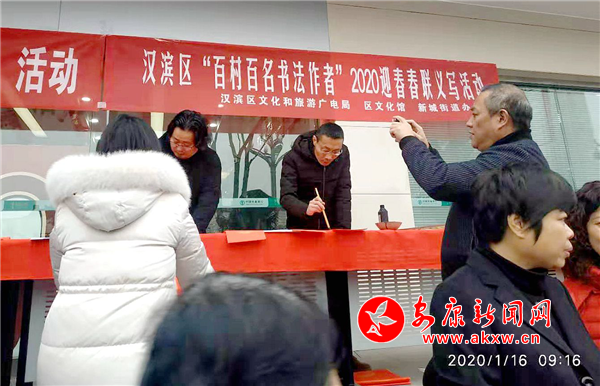 本網(wǎng)訊(通訊員 王艷 劉長青 趙小順)“迎新春、貼春聯(lián)”是中華民族的傳統(tǒng)文化,突顯了年味民味,一副副精美的春聯(lián),蘊含著辭舊迎新的美好祝福。2020年1月16日,漢濱區(qū)文化旅游廣電局、漢濱區(qū)文化館、新城街道辦分館在巴山中路舉辦“百村百名書法作者”義寫和2020年“文化小康行動——萬副春聯(lián)進農(nóng)家”活動。