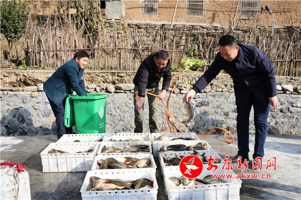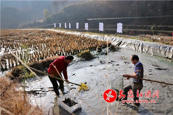 一大早,流芳村脫貧戶張遠(yuǎn)林一家就來(lái)到自家稻田撈魚。趕魚、撈魚、裝筐一氣呵成,他們要盡快把這些魚送到村里的收購(gòu)點(diǎn)。