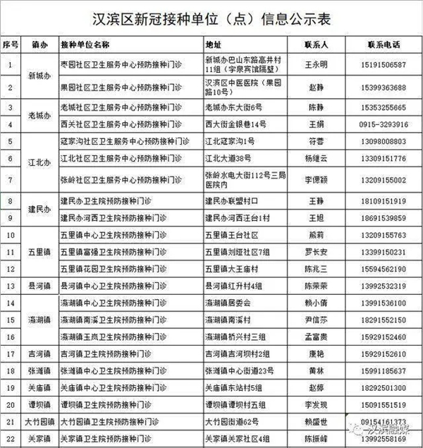 接種新冠疫苗是“外防輸入、內(nèi)防反彈”最根本最有效的措施。為加快建立牢固的全民免疫屏障,提高免疫接種速度,自12月20日至12月31日,漢濱區(qū)所有新冠病毒疫苗接種門診(點(diǎn))中午取消休息,采用輪換班方式加班接種;新城街道、老城街道、江北街道、建民街道(含高新區(qū))轄區(qū)內(nèi)新冠接種門診(點(diǎn))取消周末;接種時間統(tǒng)一調(diào)整為每天8:00至17:00時。