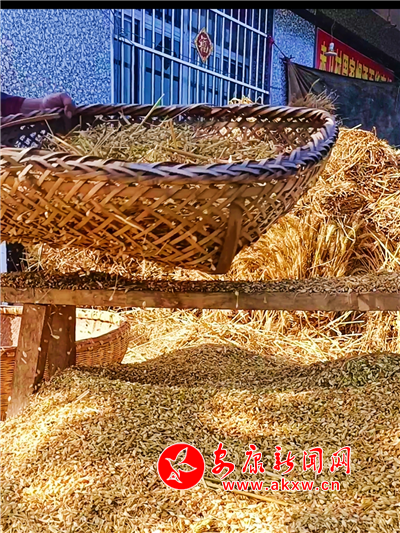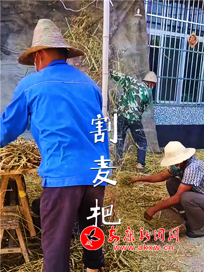 6月6日,驕陽似火。漢濱區(qū)赤衛(wèi)村周全洪一家忙得不亦樂乎,他戴著草帽和口罩,將麥穗一把一把喂進(jìn)脫粒機(jī),幫忙的鄰居們或抱捆持簸或木叉飛揚(yáng),妻子不停地晃動(dòng)手中竹篩,金燦燦的麥粒散落成堆,女兒夢(mèng)蝶一邊端茶水遞毛巾,一邊用手機(jī)直播:“這是陜南農(nóng)村傳統(tǒng)的打麥子方式。”“形象很酷,動(dòng)作很帥……是不是?”“要吃富硒新麥子,可以呀!”益農(nóng)的“新農(nóng)具”,帶貨又漲粉。