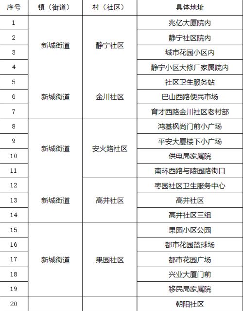 附件:漢濱區(qū)中心城區(qū)全員核酸檢測(cè)采樣點(diǎn)一覽表