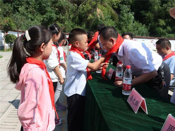 捐贈(zèng)儀式上,少先隊(duì)員向各位嘉賓敬獻(xiàn)紅領(lǐng)巾。校長(zhǎng)馮波向愛(ài)心企業(yè)、愛(ài)心人士對(duì)教育事業(yè)的大力支持表示衷心的感謝。