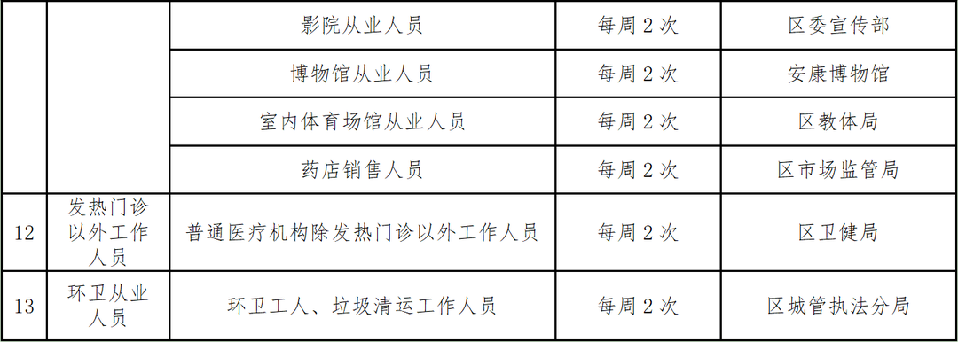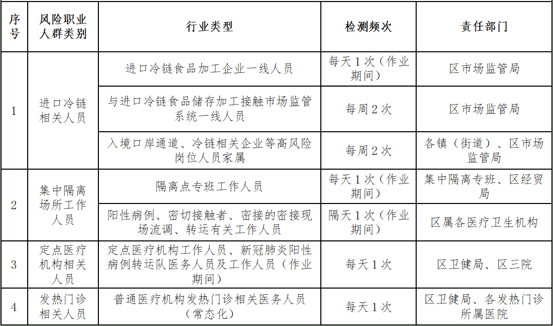 風(fēng)險(xiǎn)職業(yè)人群周期性核酸檢測(cè)一覽表
