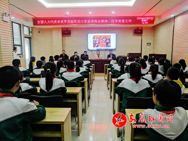 本網(wǎng)訊(通訊員 趙軍 徐紅云)鄉(xiāng)村美育助力鄉(xiāng)村振興,播撒大愛浸潤孩子成長。3月22日,全國人大代表、陜西美術(shù)家協(xié)會副主席宋亞平冒著綿綿春雨,來到漢濱區(qū)雙龍鎮(zhèn)學(xué)校宣講全國“兩會”精神,指導(dǎo)鄉(xiāng)村學(xué)校美育工作。