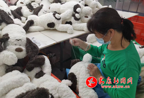 正月初十,五里工業(yè)集中區(qū)入園企業(yè)米小點(diǎn)品牌玩具管理有限公司生產(chǎn)車間內(nèi)一片忙碌景象:機(jī)器作業(yè)聲不絕于耳,流水線高速運(yùn)轉(zhuǎn),工人們神情專注、忙而不亂、緊張有序,一個個形態(tài)各異、栩栩如生的毛絨玩具從流水線上快速成型。