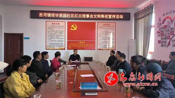 “清明節(jié)是祭奠先人、緬懷逝者、寄托哀思的日子,我們要抓住這個重點(diǎn)時間節(jié)點(diǎn),通過持續(xù)的宣傳引導(dǎo)和政策解讀,推動移風(fēng)易俗、文明祭掃理念深入人心。”理事會組織社區(qū)干部、部分黨員群眾代表學(xué)習(xí)了《紅白理事會章程》,宣讀了《2024年清明節(jié)文明祭掃倡議書》,安排部署了當(dāng)前森林防火工作,號召大家遵守社會公德,用綠色、健康、簡約的祭掃方式表達(dá)對逝去親人的思念之情,減少集中出行發(fā)生交通堵塞、焚燒紙錢造成火災(zāi)隱患情況發(fā)生。