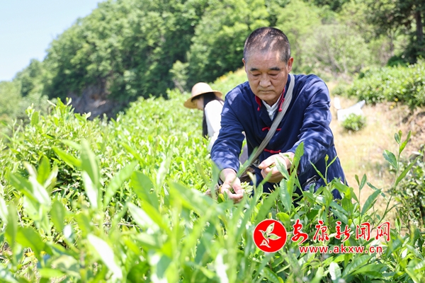 立夏時節(jié),漢濱區(qū)大竹園鎮(zhèn)茶棧村,王春久和茶農(nóng)們在海拔800米之上的高山茶園采摘鮮葉,制作春茶過后頭采夏茶。