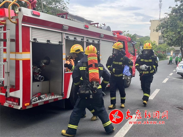 演練活動模擬不明原因?qū)е略撔^(qū)一住戶家著火,情況緊急,需要立即疏散該樓層的所有人員。在演練過程中,一系列緊張而有序的場景依次呈現(xiàn)。首先,在演練樓層釋放煙霧,營造出逼真的火災場景。緊接著,消防車迅速開進小區(qū),消防人員利用擔架上樓,成功救援模擬受傷人員,并有條不紊地疏散了樓層內(nèi)被困的人員。在一樓,醫(yī)護人員嚴陣以待,隨時準備對受傷人員進行緊急救治。