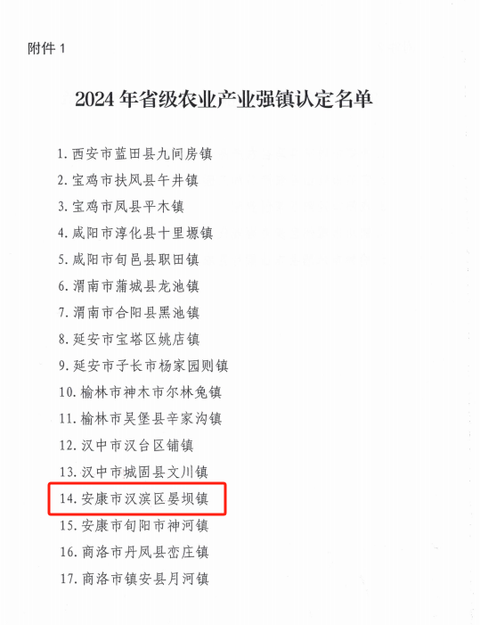 3月4日,陜西省農(nóng)業(yè)農(nóng)村廳公布2024年省級(jí)農(nóng)業(yè)產(chǎn)業(yè)強(qiáng)鎮(zhèn)認(rèn)定名單。其中我市漢濱區(qū)晏壩鎮(zhèn)名列其中。 tPb安康新聞網(wǎng)