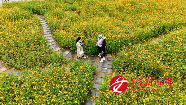 通訊員 賀珍珍 熊樂眼下,漢陰縣花月灣迎賓公園的硫華菊進(jìn)入盛花期,金燦燦的花朵在秋風(fēng)中搖曳生姿,與點綴其間的巨型花環(huán)草帽相映成趣,共同織就一幅溫暖而靈動……