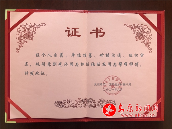 9月初,漢陰鄉(xiāng)村振興工作領導小組要求明確全縣派駐的第一書記和駐村隊員實行“師傅幫帶”,接到通知后我心里竊喜,打定主意一定要“拜”軍壩村黨總支劉光興同志為師傅。然而在我走到劉總支面前提及此事時,平時和藹可親的總支瞬間變得深沉嚴肅起來,沉默了幾秒后強調(diào)要報請上級部門批準才答應。這個舉動著實讓我犯嘀咕甚至還有點失望,內(nèi)心想著是不是劉總支不想帶我或者看不上我這個徒弟?按照縣上統(tǒng)一安排,很快就組織了“師傅幫帶”集中培訓,發(fā)放證書,并對師傅和徒弟分別提出考核獎懲 ?此拼耸马樌沓烧,我在工作中叫總支,生活中叫師傅,沒有一點違和感。