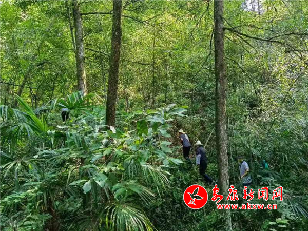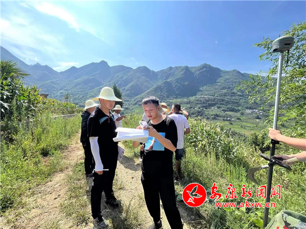 為防止中暑,早上7點(diǎn)多,專班工作小組隊員喝完藿香正氣水就開始征遷工作。樹林里腳下荊棘擋道、頭頂胡蜂環(huán)繞,隊員拿著柴刀、驅(qū)蟲劑,在烈日炙烤下,冒著高溫在田間地頭認(rèn)真嚴(yán)謹(jǐn)?shù)刈龊谜闪俊⒂涗、確認(rèn)土地類型等工作,做到群眾的地在哪,工作組丈量的腳步就到哪。