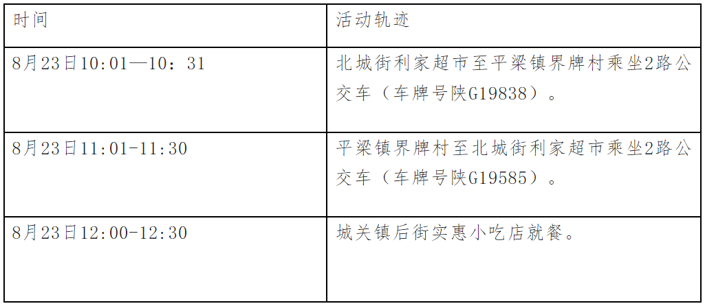 根據(jù)流調(diào)情況,現(xiàn)將西安市確診病例涉及密切接觸者在漢陰縣的公共場(chǎng)所活動(dòng)軌跡公布如下: