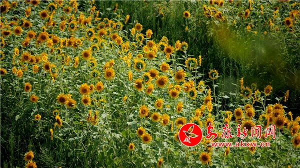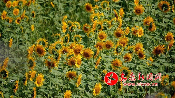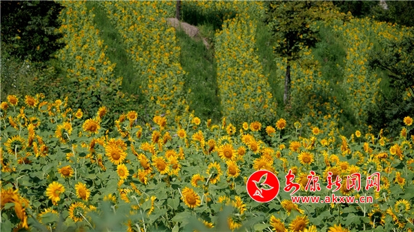 初秋時節(jié),鳳凰山南麓有片百余畝的向日葵競相綻放,成為鳳堰古梯田景區(qū)里一道嶄新的風景線。來到鳳堰古梯田景區(qū)的老君關觀景臺,放眼望去,山間坡地里的向日葵向陽盛開,在青山和稻田的映襯下,顯得格外鮮艷奪目,朵朵葵花隨著微風漾起金色的花浪,好像一幅色彩斑斕的田園風光畫卷。