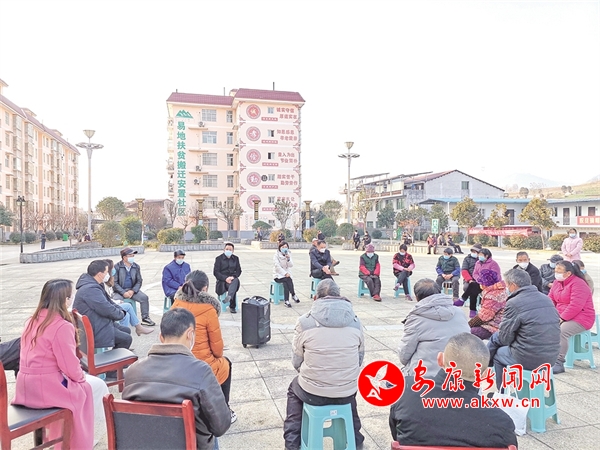 1月5日,在興隆佳苑搬遷社區(qū)廣場(chǎng)上,錦繡漢陰宣講團(tuán)成員正與村民圍坐在一起宣講黨的二十大精神。“國(guó)家的政策好啊,讓我們從深山里搬出來(lái),還住上了這么好的房子,子女也能在附近務(wù)工掙錢(qián),生活越來(lái)越好了!”宣講現(xiàn)場(chǎng),居民袁奶奶積極參與互動(dòng),并自發(fā)大聲唱起《沒(méi)有共產(chǎn)黨就沒(méi)有新中國(guó)》。