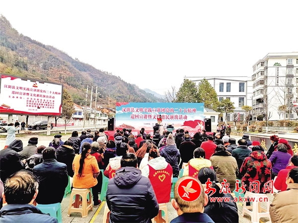 在黨的二十大勝利召開(kāi)之后,漢陰縣把學(xué)習(xí)宣傳貫徹黨的二十大精神作為首要政治任務(wù),充分發(fā)揮理論宣講在統(tǒng)一思想、凝聚力量、化解矛盾、促進(jìn)發(fā)展上的積極作用,組織廣大宣講員深入基層一線(xiàn),利用春節(jié)期間外出人員返鄉(xiāng)時(shí)機(jī),找準(zhǔn)結(jié)合點(diǎn),讓黨的“好聲音”在基層常響,進(jìn)一步增強(qiáng)基層干部群眾“聽(tīng)黨話(huà)、感黨恩、跟黨走”的思想自覺(jué)和行動(dòng)自覺(jué)。