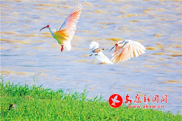“現(xiàn)在這河壩邊上的朱鹮越來越多了,以前就能看到幾只,現(xiàn)在經(jīng)常能看到一大群,一二十只在河壩邊上找食吃,它們也不怕人,我們有時候在河壩邊上種莊稼,逛的時候都能看到,離我們很近……”作為國家一級保護動物,朱鹮被視為國鳥,被譽為“東方寶石”。近日,有村民在漢陰縣月河河畔發(fā)現(xiàn)20多只朱鹮在河邊漫步覓食的悠閑畫面,美不勝收。隨著漢陰的生態(tài)不斷向好,不僅野生朱鹮的數(shù)量穩(wěn)步增長,其活動范圍亦在不斷擴大。