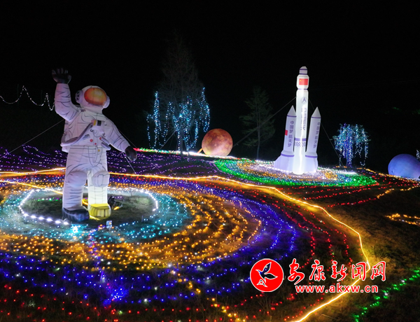 晚上八點(diǎn)夜幕降臨,中堰村篤敬農(nóng)業(yè)生態(tài)園內(nèi)一片燈光璀璨,造型各異的燈光秀給園區(qū)披上了流光溢彩的華衣,游客漫步其中駐足欣賞、拍照打卡留念,開啟一段沉浸式光影夜游之旅。