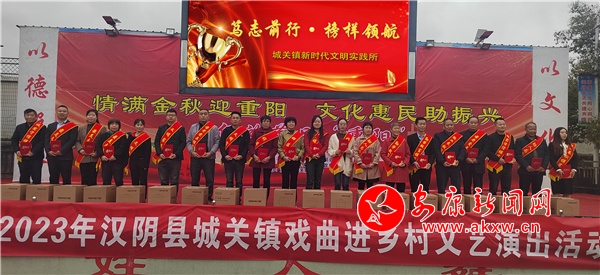 本網(wǎng)訊(通訊員 張輝)10月20日,漢陰縣城關(guān)鎮(zhèn)“情滿金秋迎重陽、文化惠民助振興”文藝會演暨2023年精神文明先進典型表彰大會在三元村文化廣場隆重舉行,200余名干部群眾歡聚一堂,共同分享精神文明建設(shè)及鄉(xiāng)村振興優(yōu)秀戲曲文化盛宴。