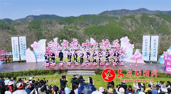 在桃花文化節(jié)上,既有桃花美景,也有文化盛宴。沐浴著和煦的春光,魔術表演、美猴王模仿秀等形式多樣的節(jié)目輪番上演,現(xiàn)場人潮涌動,觀眾掌聲不斷,氣氛十分熱烈。