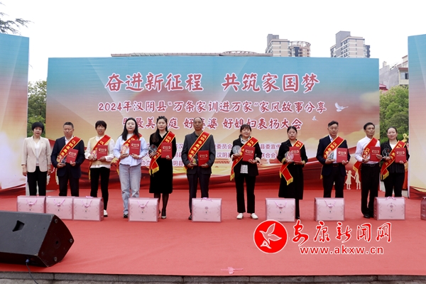 本網(wǎng)訊(通訊員 賀珍珍 熊樂 張欣欣)為進(jìn)一步弘揚(yáng)家訓(xùn)文化,傳承優(yōu)良家風(fēng),5月9日,由漢陰縣紀(jì)委監(jiān)委、縣委宣傳部主辦,漢陰縣婦聯(lián)、縣文聯(lián)承辦的“奮進(jìn)新征程 共筑中國(guó)夢(mèng)”——“萬條家訓(xùn)進(jìn)萬家”家風(fēng)故事分享暨最美家庭、好婆婆、好媳婦表?yè)P(yáng)大會(huì)在漢陰縣鳳凰廣場(chǎng)舉行。