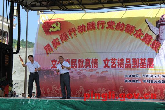 7月15日下午18時,由平利縣文廣局、文化館主辦,司法局、各鎮(zhèn)人民政府協(xié)辦的法制文藝下鄉(xiāng)巡回首場演出活動在正陽鎮(zhèn)廣場舉行,拉開了2014年平利縣夏季法制宣傳的序……