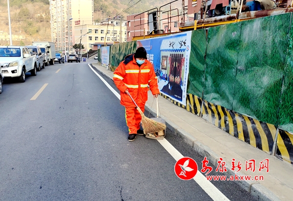 本網(wǎng)訊(通訊員 王輝) 1月21日(除夕)早上8時許,空氣中依舊彌漫著寒冷的氣息。筆者在陜西省寧陜縣城區(qū)川流的行人和車輛旁看到,環(huán)衛(wèi)夫妻檔方明貴和李金蘭正一……