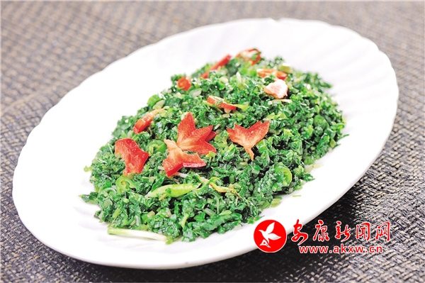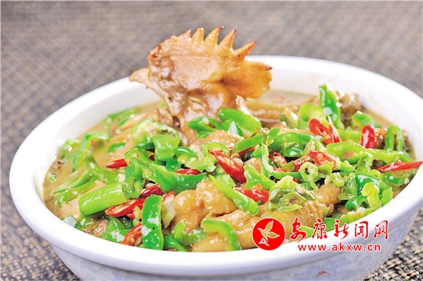 辣椒是農(nóng)家自產(chǎn)的時(shí)蔬,魚是嵐河水孕育出的鮮魚,皆是原生態(tài)無(wú)公害食品。一個(gè)鮮綠,一個(gè)鮮嫩,色香味美,佳偶天成。