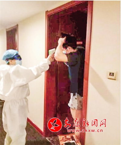 基地工作人員正在對(duì)隔離的國(guó)家隊(duì)隊(duì)員測(cè)量體溫。