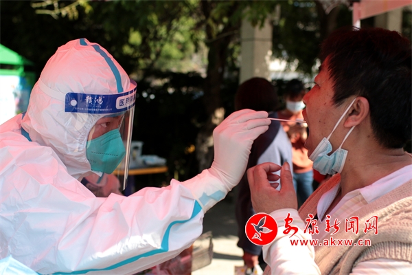 “我們城北社區(qū)幸;▓@第8核酸采樣組,從昨天下午就開始部署,共有8名(社區(qū))工作者,從昨天下午在各個(gè)小區(qū)進(jìn)行通知,爭取逐戶都能在今天中午12點(diǎn)之前完成全民核酸采樣。”城關(guān)鎮(zhèn)城北社區(qū)工作人員蘇培勝說。