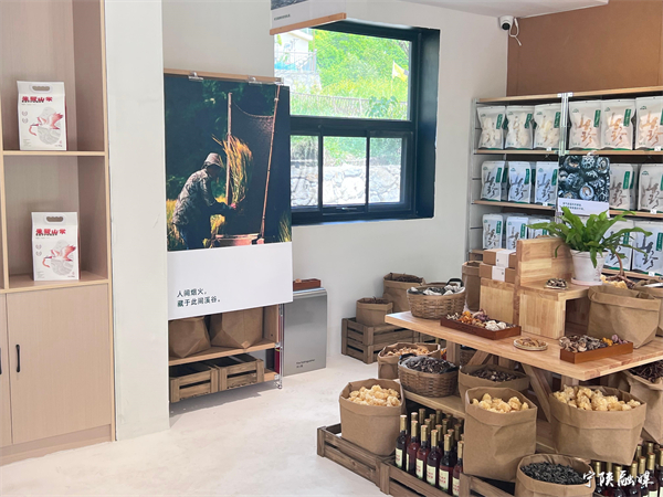 伴隨著一陣噼里啪啦的鞭炮聲,5月1日,城關(guān)鎮(zhèn)“八畝溪谷”精品民宿投入試運營。走進民宿的生態(tài)社區(qū)服務(wù)中心,右側(cè)的山珍展示區(qū)吸引了群眾和游客的目光,木耳、山菌、朱鷺大米、五味子酒等當?shù)靥禺a(chǎn)受到游客青睞。