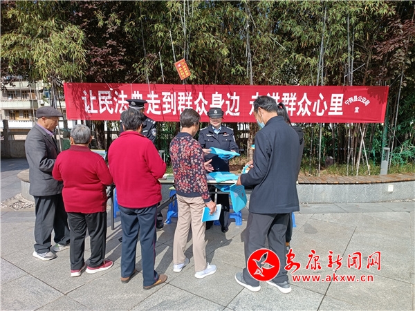 在縣政府廣場活動現(xiàn)場,通過懸掛橫幅、發(fā)放各類宣傳書籍、法治宣傳品等普法資料、設立法律咨詢服務臺等形式向群眾宣傳《中華人民共和國民法典》《信訪工作條例》和《反電信網(wǎng)絡詐騙法》。民警結(jié)合群眾普遍關心的婚姻家庭、遺囑繼承、勞務糾紛、高空拋物、財產(chǎn)保護、隱私保護等熱點難點法律問題,借助群眾身邊日常小事、糾紛案例,進行了耐心講解和交流,讓法律真正深入人心、為民所用,解民憂、紓民困。