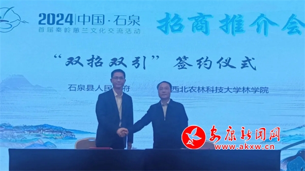 △ 石泉縣人民政府同西北農(nóng)林科技大學簽訂雙招雙引合作協(xié)議