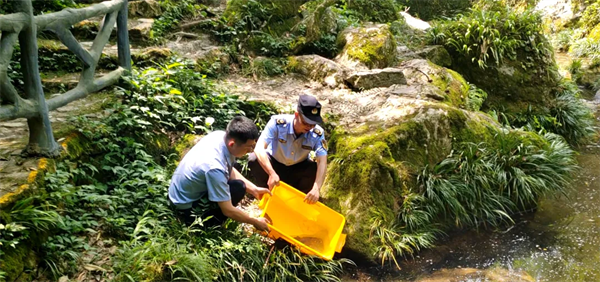 接到疑似“娃娃魚”的動(dòng)物后,民警迅速聯(lián)系石泉縣農(nóng)業(yè)農(nóng)村局協(xié)助救助。經(jīng)縣農(nóng)業(yè)農(nóng)村局工作人員比對(duì)確認(rèn),該動(dòng)物正是“娃娃魚”,又名大鯢,屬國(guó)家二級(jí)重點(diǎn)保護(hù)野生動(dòng)物。5月16日上午,民警聯(lián)合縣農(nóng)業(yè)農(nóng)村局工作人員,在一處植被資源豐富的水源地上游,將“娃娃魚”放生回歸大自然。